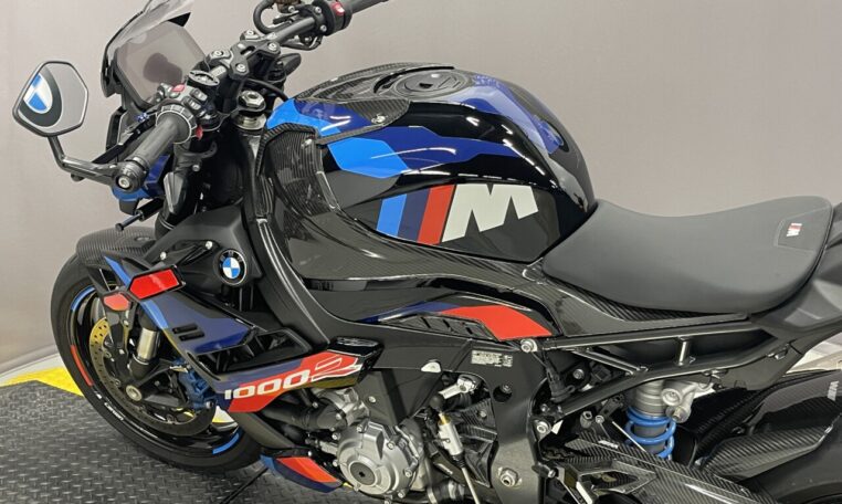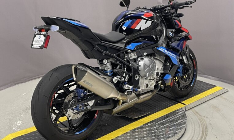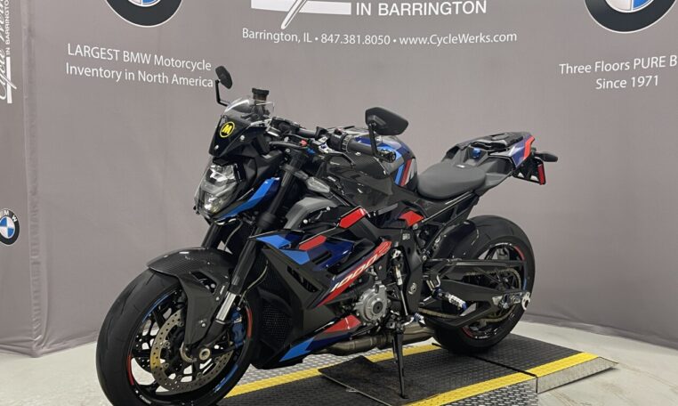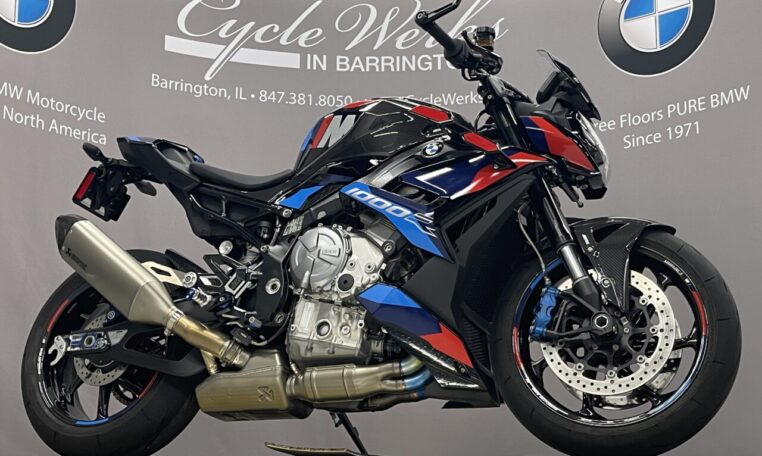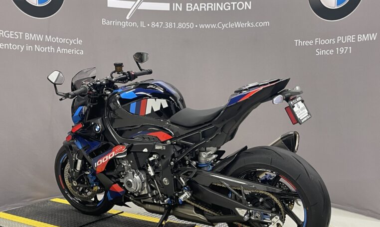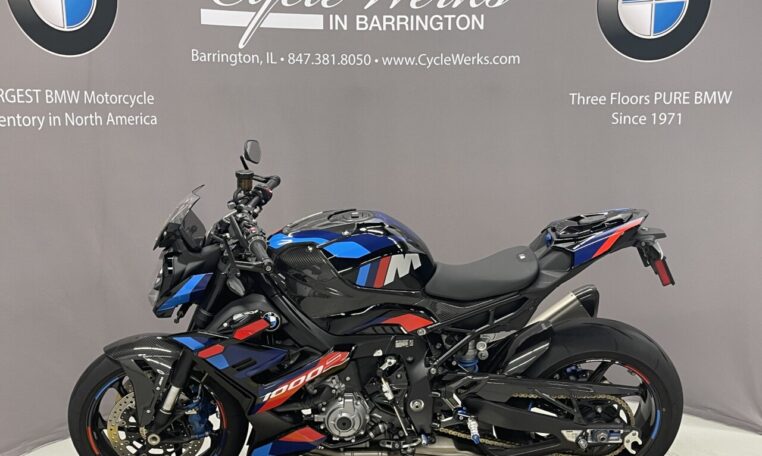 This used BMW M1000R is for sale at Cycle Werks in Barrington, IL. It is in immaculate condition with only 1,229 miles. Our service department has inspected the bike and the 600 mile service was completed, so this bike is ready to ride. It has BMW Factory Warranty remaining until 7/18/2026 or 36000 miles, whichever comes first, and is equipped with an M GPS Laptrigger, M Carbon Wheels, M Titanium Exhaust System, Passenger Seat Cover, Carbon Package, M Passenger Seat, Passenger Kit , Tire Pressure Monitors, M Competition Package, M Billet PACK, Small Wind Screen, Axle Spools, BMW M Chain Adjuster, TFT Protector and a Battery Tender Lead.